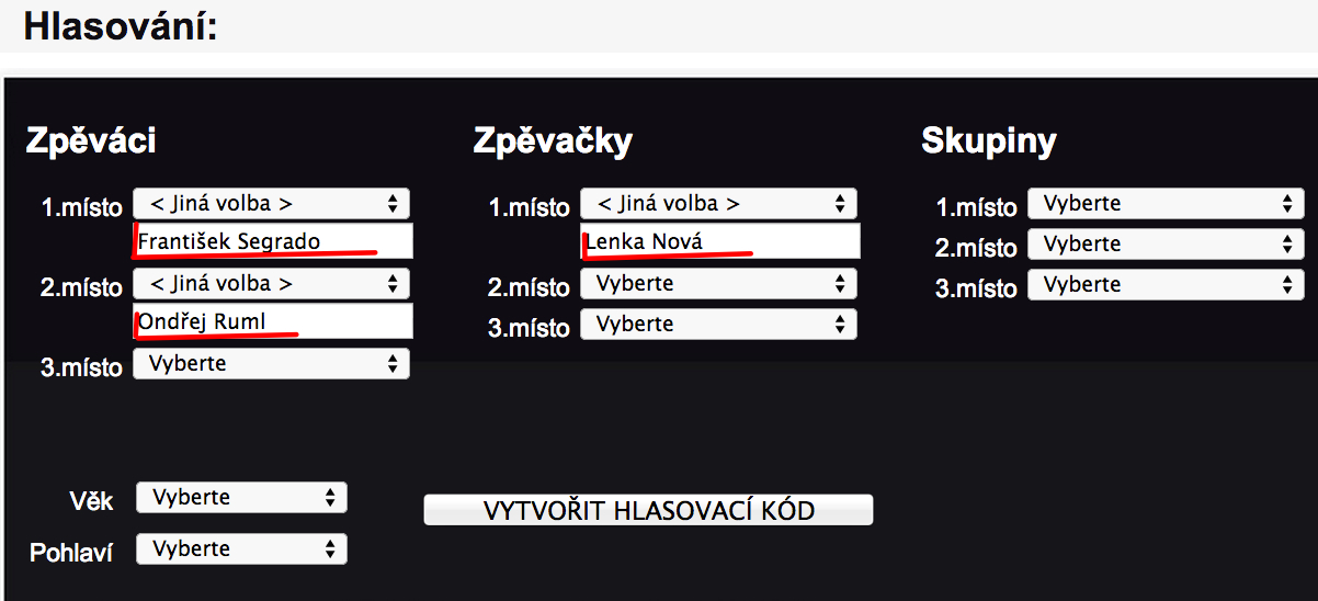 Hlasovat můžete do neděle 23.listopadu 2014. Vyberte jen jinou volbu a napište jména. Tohle totiž můžeme taky změnit.