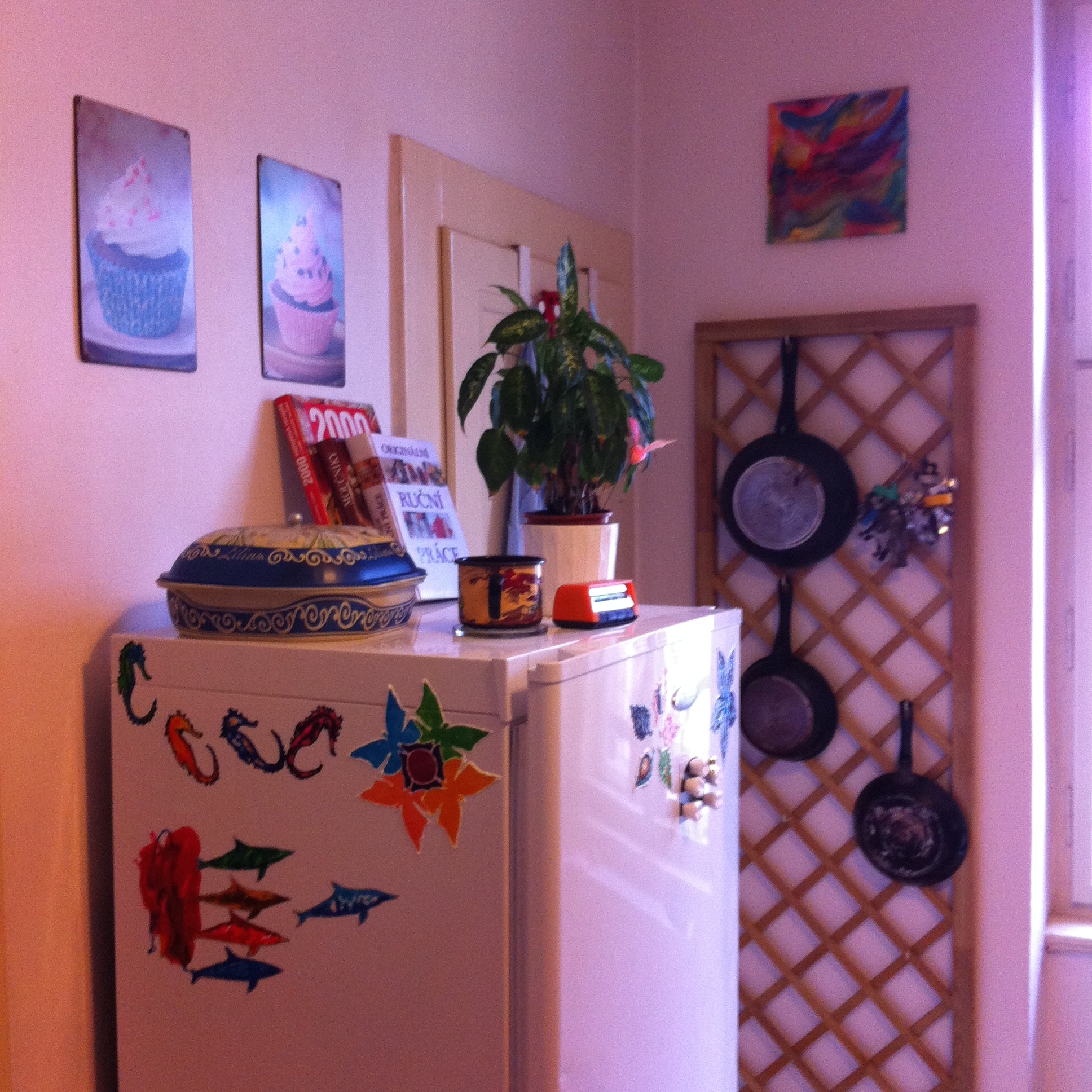 Ale zpátky ke kurzu: malování na hedvábí mě prostě nadchlo a hrozně nabilo pozitivní energií a kdykoliv svou prvotinu vidím, vzpomenu si na Mr.A. a taky na Kněžnu a zaplaví mě obrovská vděčnost za to, že tyhle dva lidi ve svém životě mám. Jsou to určité formy lásky, nebo prostě tepla, které mě poleje, když si na ně vzpomenu. (Na každého zvlášť! Kdyby dohromady, tak to bude taky hřát, ale rozhodně z jiných důvodů a k lásce to bude mít daleko, dámy a pánové! It’s a big No, No, No!)