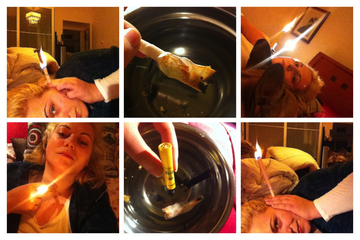 Zkouším ušní a tělní svíce. Ferguska to zajímá (poslední a první obrázek- najdi 12 rozdílů :-)